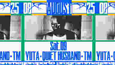 YUTA é um DJ e produtor baseado em Tóquio, conhecido pelo seu estilo psicadélico e intimamente ligado ao deep techno, sendo também fundador da editora Liquid Drop Groove. Com atuações e projetos em toda a Ásia, Europa e América do Sul, continua a moldar a cena underground através de eventos, mixes e colaborações modulares. Quiet Husband é um artista inovador que funde techno industrial, minimalismo e atmosferas post-noise em paisagens sonoras sombrias e fragmentadas. Com lançamentos em editoras experimentais de referência e atuações no Berghain, Tresor e Berlin Atonal, o seu trabalho explora a contenção, a decadência e a tensão do silêncio. TM é o responsável pelo warm-up este sábado.
