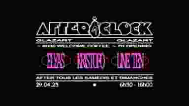 After O'Clock est de retour ce samedi 29 avril au petit matin ! 🥵🔥 On vous donne rendez-vous de 6h30 à 16h dans le club indoor de Glazart à Porte de La Villette. Rendez-vous pour un nouveau plateau techno qui donne chaud avec Krystofo, Elyas & Line Ten. ~ 6h30 Welcome coffee ~ 7h Opening __________________________ 🎫 TICKET Sur place : 9,50€ Préventes : 9,50€ 𝗚𝗥𝗔𝗧𝗨𝗜𝗧 à partir de 12h __________________________ ⏰ AFTER O'CLOCK Au menu de ton petit déj : 🍊 Line up techno survitaminé 🔊 Soundsystem full DnB 🌟 Show light ⛩ 3 terrasses en extérieur ______________________ 🦺 VESTIAIRE Prix par article : 2€ Capacité limitée, venez léger ! Pas de valise, plan vigipirate. ______________________ 🚧 ACCÈS L'événement est réservé à un public de + de 18 ans. Une carte d'identité vous sera demandée à l'entrée. La direction se réserve le droit d’admission. 7-15 Avenue de la Porte de la Villette 75019 PARIS M(7) : Porte de la Villette _____________________ 🕰 HORAIRES D'OUVERTURE Afters tous les samedis, dimanches & veilles de jours fériés de 6h30 à 16h. _____________________ Licence 2 : R-20-0010014 Licence 3 : R-20-0010015 ______________________ Glazart www.glazart.com facebook.com/Glazartparis instagram.com/glazartparis Visuel : instagram.com/adntm_