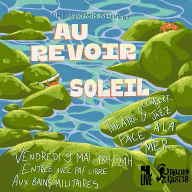 Début du spectacle à 18H30. Lieux secret, face à la mer et en centre ville, communiqué le jour même sur instagram (@radio_pastis).