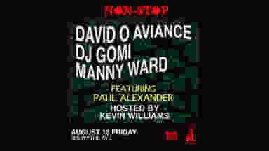 Join us for the NON-STOP release party featuring David O Aviance, DJ Gomi, Manny Ward, and Paul Alexander. Hosted by Kevin Williams A-Z David Ohana Aviance