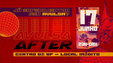 Teremos lista T para o AFTER - obrigatório compartilhar o flyer do nosso rolê no Instagram marcando @festaavulsa nos stories. Iremos conferir na entrada no evento.