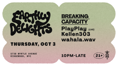 Breaking Capacity celebrates the disruptive power of breaks and bass. For our Earthly Delights debut, we’ll begin the night with a live hardware DnB set from PlayPlay, and then move into DJ sets by NYC bass aficionado Kellen303 as well as SLICK DOWN cofounder wahala.wav for a wild night.