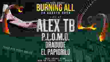 BURNING ALL conta com uma das lendas do HARDTECHNO / SCHRANZ ( ALEX TB) e ainda com P.L.Ø.M.O , DRAUUDE, EL PAPIGRILO. Será uma noite a todo gás com batidas contundentes , NÃO FALTES !!