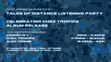 Chez Tropics begins his album release tour with a listening party to celebrate 'Tales of distance" now being available in all streaming platforms in the lower east side. Timeless Nexus Presents Tales of Distance listening party Celebrating Chez Tropics’ album release Featuring Alea Cosme & Poison Ivy Thursday December 12 (10PM - 2AM)