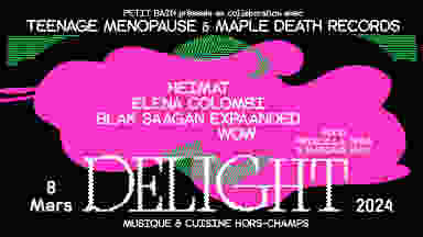 Delight c’est le festival de Petit Bain qui place la curiosité et l’émergence au cœur de sa programmation. Durant trois jours Petit Bain fusionne ses deux passions que sont la musique et la gastronomie. Cette année, Petit Bain a tricoté une programmation avec des artistes audacieux.ses et radicales.ux imaginée en collaboration avec quatre labels. Ainsi pendant trois jours c’est autant nos passions que la collaboration et le partage que nous célèbrerons avec Bongo Joe, Teenage Menopause, Maple Death, færies records et Hello Ernest.