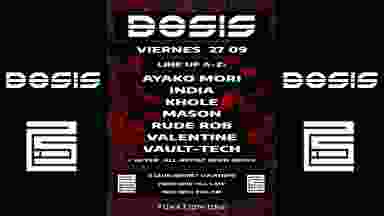 - MASON: Joven productor de Madrid que empieza a dar salida a su proyecto en formato LIVE SET. Visita Dosis por segunda con nuevo material aún más potente! Nos presentará su directo influenciado por el TECHNO OSCURO y el HARD TECHNO.