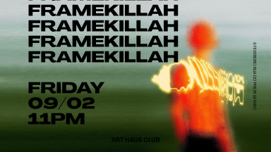 09 | 02 Framekillah You are not me and I am not you, but you and I are the same thing. Art Haus Club Reserva-se o direito de admissão. +18 * 1 drink for pre-sale tickets - redeemable and usable until 00:30h