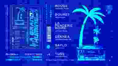 A colorful line-up with where 𝗕𝗢𝗨𝗥𝗦?, 𝗥𝗢Ü𝗚𝗘, 𝗟𝗔 𝗣𝗘𝗡𝗗𝗘𝗥𝗜𝗘 𝗡𝗢𝗜𝗥𝗘, 𝗗𝗘𝗞𝗡𝗘𝗔, 𝗦𝗔𝗬𝗟𝗢 & 𝗧𝗨𝗦𝗦 will share the stage all night long.