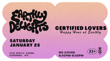 Dynamic B2B of Certified Jesus Freak & Love Higher gracing the decks for happy hour at Earthly. Love Higher: Residing between Ohio and New Jersey, Love Higher is a dynamic DJ and producer with an eclectic range that spans footwork, afro-funky, gqom, techno, club and beyond. Having grown in the Ohio/Midwest nightlife scene, Love Higher’s beginning started with Verge.fm (@vergefm), an internet radio station that ran from 2020-2022. As a member of Blessed Up Gang (@blessedupgang), a Black DJ collective rooted in Ohio, as well as Errant Forms (@errantforms) (OH), Club Hysteria (@clubhysteria) (NJ), a global club collective and SLICK DOWN (@slickdown) (NYC), their influence in organizing various panels, workshops and party series stretch far and wide. They have DJ mixes released on pivotal series such as JEROME Mixfiles, BLUSH, Daisychain, and Somersault Records. In June they released their first original EP, “An Ode To..,” a cross-section between club, and techno. You can find their music on their Bandcamp and Soundcloud. Certified Jesus Freak: Certified Jesus Freak is a Southern-born, NC-raised, and NJ-residing DJ with a sound that commonly covers black electronic club music but often extends to whatever genres the crowd can enjoy and dance to, commonly referred to by friends as an "anything goes" mindset. They've recently thrown parties under the "How to Get to Heaven" moniker (@h2g2h.wav on IG) and have forayed into making original music. You can find them on Instagram, Soundcloud, and Bandcamp.