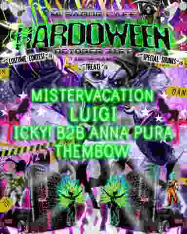 WE ARE BACK! ON FRIDAY OCTOBER 31ST THE FIRST EVER... HARDOWEEN - WITH MISTERVACATION, LUIGI, ICKY! B2B ANNA PURA AND THEMBOW.