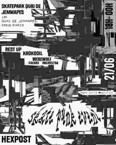 HEX POST SKATE / PUNK EVENT 21 juin 2024 fête de la musique/ go skate day 18h-0h00 changement de lieu: Bastille! début des concerts à 20h changement de line up wth MODERN LOOSERS // HEX POST JAM // WEREWOLF COLOURS ORCHESTRA