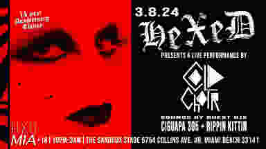 🦇H E X E D🦇. BY HEXED MIAMI ::HEXED MIAMI has served the South Florida goth community for 14 years. We are celebrating by bringing you a series of events for 2024. We hope you join us and keep our community alive and growing. ::We continue to celebrate our 14th anniversary on March 8th, with special featured artist darkwave/electro duo COLD CHOIR [NC]. Join us for another fun-filled night of darkness. :::KEEPING US DANSING ALL NIGHT:: ::Ciguapa305 [Sinister | HXD MIA Sound Bite Radio] W/Special Guest DJ:: ::RIPPIN KITTIN [NIGHT SHIFT | BLACK MARKET | LAGRIMAS | HXD MIA SOUND BITE RADIO] :::EVENING SOUNDS:: Post-Punk | All Wave | Electronic | Dark Obscurities | Industrial 18+ [Must present valid ID to enter} 10 PM-3 AM Location: The Sandbox Stage 6752 Collins Ave. Ste. B Miami Beach (North) 33141 [The SandBox Stage is located behind the Sandbar & the entrance is through the side alley] FOR MORE INFO CONTACT HEXEDMIAMI@GMAIL.COM 🚘Free Lot & Street parking City parking is free in this area after 6 pm. There are 2 city parking lots near the venue, on Harding between 69th and 70th St. which is only a 5-minute walk from the parking lots to the venue. There is also street parking along Collins Avenue and also on 69th Street. Remember venue entrance is not through Sand Bar but through the side alley entrance. You will see the sign on the side of the building.