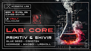🧪⚗️ HYPNOTIC LAB présente LAB’ CORE ⚗️🧪 Expérience 001 – Injection d'Acide Contrôlée Le laboratoire commence officiellement ses premières expériences au Vault Club. Pour cette première injection d'acide, nous lançons un protocole expérimental dédié aux structures les plus brutes de la tekno underground. Bienvenue dans le lieu de toutes les expériences. Ici, le son est une matière. Entre nappes mélodiques, kicks corrosifs et montées sous haute pression, nous avons conçu une expérience immersive où chaque fréquence est analysée, testée et poussée à son seuil critique. 🧬 Aucune limite de genre musical. 🧬 Aucune tolérance au silence. 🧬 Réaction collective attendue. 🔬 SUJETS D’EXPÉRIMENTATION SONORE : 🧪 PRIMITIF 🧪 SHIVIR 🧪 BLUE SEED 🧪 COMOTEK 🧪 HORANGE 🧪 IKKOBOI 🧪 LASKOLL 📋 PROTOCOLE 001 – RAPPORT PRÉVISIONNEL Injection d’acide : réussie Montée en pression : progressive Sujet : euphorique mais instable Battements : accélérés Température ambiante : en hausse constante Exposition au silence : strictement interdite Fin du rapport. Début de l’expérience. 🕶️ INFOS PRATIQUES 📍 Le Vault Club – Mulhouse 🗓️ Samedi 18 Avril 2026 ⏳ 23H00 → 06H30 🎛️ Tekno / Acidcore / Mental / Psytrance / Rave Elements 🧥 Vestiaire 👍 Safe place – Respect absolu entre participants 🚫 Interdit aux mineurs – Carte d’identité obligatoire La direction se réserve le droit d’accès.