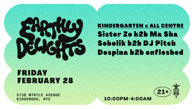 Kindergarten x All Centre — two labels pushing forward-thinking, high-energy club sounds — link up for the first time to take over Earthly Delights. A full night of b2b synergy featuring: