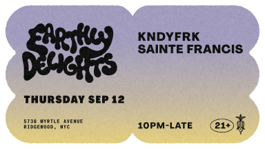 KNDYFRK is the house-centric, percussion-forward, flamboyant-yet-soulful product of the combined talents of Brooklyn DJs Kandylion and SPRFRK. Both longtime disciples of the Brooklyn underground queer dance scene, their chemistry behind the decks is dynamic and joyful, a fusion of their respective musical stylings into an experience that is equal parts sweet and freaky.