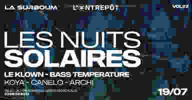 La Surboum est de retour pour la deuxième édition des Nuits Solaires à l’Entrepôt ! Au programme : retrouvez Bass Temperature, Le Klown et Koya, accompagnés de nos fidèles résidents Canelo et Archi !