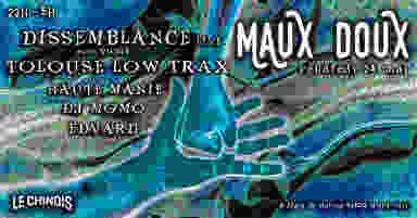 ✦ Le Chinois présente : MAUX DOUX #3 / Dissemblance live, Tolouse Low Trax, Haute Manie, DJ MOMO & Edvard ✦ LINE UP ✦ ➝ DISSEMBLANCE live accompagnée par Vicnet ➝ TOLOUSE LOW TRAX ➝ HAUTE MANIE ➝ DJ MOMO ➝ EDVARD ✦ INFOS ✦ Sur place 10€ CASH ONLY