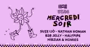 Mercredi Soir : Suze Ijó, Nathan Homan B2B Jelly, Halpipe, Hibziak & Homies