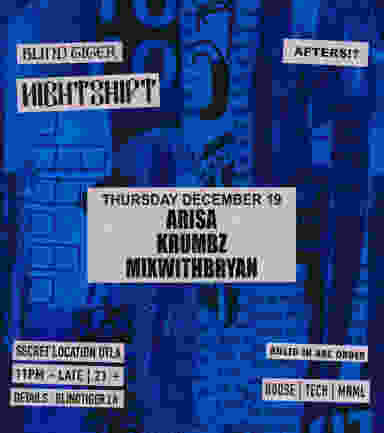 “Blind Tiger” is an artist collective & underground house music community based in Los Angeles, CA. Deeply rooted in the after hours scene, the music at our “secret afters” is dark & sexy. A strong underlying bass groove, paired with a relentless 4x4 beat is the back bone of the whole night. In modern world of electronic music driven by social media, we pride in showcasing the hottest up and comers in house music as well as veterans. In addition to that - we give underground house music an outlet for DJs to perform a set different from something people expect to hear or “back to back” with their friends in a low pressure environment. You can expect secret guests on any night, you never know who might show up!