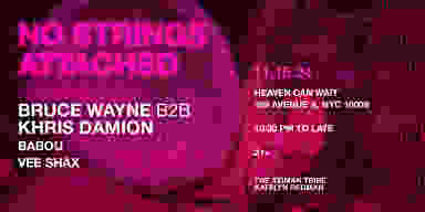 Join us for our montly installment of No Strings Attached, a new series hosted by The Aziman Tribe & Katelyn Redman, at Heaven Can Wait , right in the heart of the East Village. Known for its no-cover nights, affordable drinks, great sound system, and spacious dance floor, this venue offers the perfect setting for a night of electrifying music and good vibes.