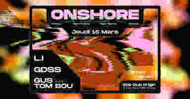 ONSHORE est de retour au CO2 pour vous faire passer une nuit des plus rapides. Avec un line up composé de nos résidents GDSS puis L.I pour vous accueillir comme il se doit. Suivi du résident GUS qui sera en B2B avec un atout majeur : TOM BOU, pour vous proposer un closing puissant. Au rendez-vous un savant mélange de techno, trance et de vitesse.