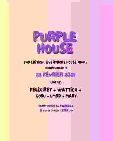Samedi 22 Février, rejoignez nous pour une soirée entièrement dédié à la musique house sous toutes ses formes avec une line up de DJs passionnés ! Le tout dans une ambiance violette 💜