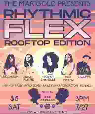 RHYTHMIC FLEX x STAY UP SATURDAY DAY PARTY ROOFTOP EDITION 3-9PM☀️ HIP HOP | R&B | AMAPIANO | BAILE FUNK | EDITS & MORE SOUNDS BY 🔊🔉🔈 DESTINY SHYNELLE CRL CRRLL SUGAR AUNTIE HEX KITTEN LUCCIHUGH ( LA) FOOD BY DOS ABUELAS🍽️