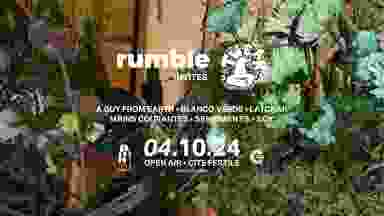 Inspiré par l’ambiance rave des années 90s, Rumble se veut organisateur d’événements conviviaux dans un esprit de fête libre et décomplexée. Le collectif souhaite fédérer un public jeune et mixte dans les bars, salles et clubs parisiens intra et extra muros. Passionné et avec le désir d’être pointu et accessible à la fois, le collectif propose des sélections musicales tout-terrain, lui permettant de construire des progressions musicales atypiques au cours de ses soirées.