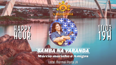SAMBA NA VARANDA - MÁRCIO MARINHO E AMIGOS Bora, bora que o show não pode parar, né minha gente?! Temos o imenso prazer de convidá-los para o mais novo projeto da Varandinha em parceria com a Mormaii Surf Bar: Samba de Varanda, com Márcio Marinho e Amigos, as sextas, com o melhor do samba e pagode em nosso happy hour. Sobre Márcio Marinho Talento nato do cavaquinho, Márcio Marinho tem como referência o mago Waldir Azevedo de quem, num primeiro momento, buscou assimilar a sonoridade límpida e o bom gosto para acrescentar conhecimentos musicais e técnica inconfundível à sua maneira de tocar. Seu amadurecimento vem sendo forjado pelos estudos e contato com artistas que fazem parte do panorama musical do Brasil. Entre eles estão o cavaquinista Henrique Cazes, o bandolinista Hamilton de Holanda, o violonista de 7 cordas Rogério Caetano, Carlos Malta, Dominguinhos, Humberto Araujo, Paulo Moura, Danilo Brito, Sombrinha e o multi-instrumentista Hermeto Paschoal. Márcio Marinho se destaca como revelação em virtude do novo conceito, da nova "cara" que vem construindo para o cavaquinho. Sua maneira de tocar faz a química das linguagens jazz/choro com doses de virtuosismo, abrindo horizontes e transformando o cavaquinho num instrumento surpreendentemente sem barreiras, que se encaixa perfeitamente em qualquer estilo musical. Marcio Marinho, Cavaquinista de 6 cordas é um dos maiores nomes do instrumento no Brasil na atualidade. @marciomarinhooficial. Serviço: Ingressos antecipados: R$ 20,00 Happy hour a partir das 19h Local: Mormaii Surf Bar Ponte JK Produção: - Varandinha - Formiga Produções