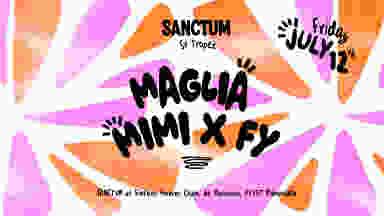 Sanctum Club w/ Mimi x FY, Maglia ------------------ Follow us : https://www.instagram.com/thisissanctum/ 🗓 Open from Wednesday to Sunday, from June 21st to September 1st ⏰ 00.00am - 06.00am 📍Sanctum Club, at Stefano Forever, Les Tamaris, chemin de Matarane, 83350 Ramatuelle ☎️ +33 6 84 83 23 84 (reservation) 🔑 Valet parking ⚠️ Come properly dressed, the establishment reserves the right to entrance of the premises.