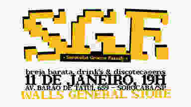 S.G.F // Sorocaba Groove Family Rolê 0800 [Grátis] na rua… Dia 11 de Janeiro // 19h [rolê de quinta] “Coisas Leves” = Breja barata, drink’s e discotecagens! Local: Walls General Store Av. Barão de Tatuí, 659 - Sorocaba/SP
