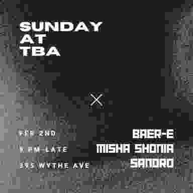 Sunday at TBA Join us at TBA Brooklyn for a night of music, dance, and a showcase of talent and community! Baer-E Misha Shonia Sandro
