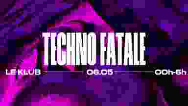 Techno Fatale est de retour sur les deux scènes du Klub en compagnie des dernières pépites de la scène féminine techno. Une scène qui tape fort, très fort ... Avec beauté et poésie ... Pour vous emmener loin, très loin … Comme par exemple dans un hangar des faubourgs de Berlin aux premières lueurs du jour ... 🔥 Line up 100% Female DJ 🔥 SCENE 1 (EBM, indus, hard techno, rave) 4h30-6h00 LING (hard techno, rave)