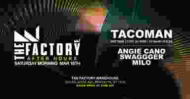 The Factory After hours Bringing the iconic Ibiza party spirit to the heart of Brooklyn TACOMAN talent and a renowned DJ From Brooklyn Miami and Ibiza - will be taking over the decks, delivering those irresistible vibes.alongside SWAGGGER , ANGIE CANO, MILO Make sure to secure your advanced tickets to save and party till dawn! Not To be missed Doors open at 3:00am Till late