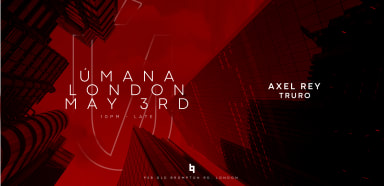 ÚMANA @ B LONDON The legendary Paris event returns to London for what promises to be a memorable edition, with AXEL REY, Úmana's flagship artist, returning from a South American tour. TRURO will be providing a worthy support act ! - ARTISTS - AXEL REY https://www.instagram.com/axelreymusic_/ TRURO https://www.instagram.com/_truro/ - INFORMATIONS - Saturday, May 3rd 22:00 - 03:00 92B Old Brompton Rd., London - BOOKING - +33 6 10 31 88 88 IG : @umana.paris Mail : umanaparis@gmail.com