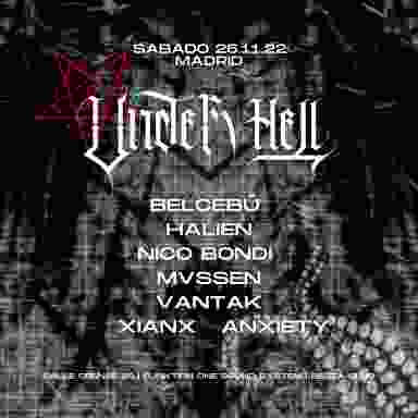 UNDER HELL 26 de Noviembre de 2022 23:00-11:00 Secta Club, Madrid. Line Up BELCEBÚ MVSSEN HALIEN NICO BONDI VANTAK XIANX b2b ANXIETY