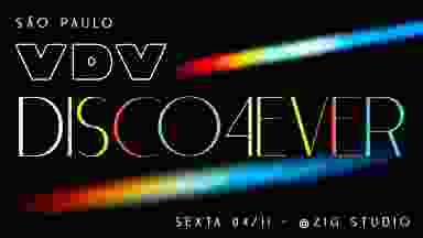 Se a VDV não é uma discoteca, não sabemos o que é! Com a caravana completa em São Paulo, retornamos ao Zigão com uma edição de buati fundamento - DISCO4EVER - porque a pista é para sempre! Com um time de DJs excelentes e performances cariocas para brilhar numa noite inspirada nos excessos e hedonismo dos anos 70 - tudo com o perfume POP tradicional da V de Viadão. Portanto separe seu melhor look brilhoso e calce as botinhas de bater que vai ser TUDO!