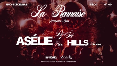 ENTRÉE GRATUITE SPHERIÄ PRÉSENTE : LA RENNAISE #4 AFTERWORK / CLUBBING 💃🏻 18H00 - 1H00 Rendez-vous au cœur de Rennes, à deux pas de l’Opéra, dans un lieu emblématique, pour une soirée d’exception mêlant DJ sets, cocktails, tapas et good vibes ! 🪩 LINE-UP : 🎧 ASÉLIE DJ parisienne mêlant house chill et afro house. Passée par des clubs prestigieux comme le Matignon ou l’Alma Club à Paris, elle vous fera voyager dans une ambiance raffinée jusqu’à 1H. 🎧 HILLS Jeune talent au son groovy et percutant, prêt à faire vibrer le Piccadilly jusqu’à la dernière note. 🎟 ENTRÉE GRATUITE – Réservez vos billets sur Shotgun pour garantir votre accès ! DRESS CODE – TRÈS IMPORTANT Tenue correcte exigée : pas de casquette, bonnet, jogging ou jeans déchirés. Optez pour une tenue élégante et soignée, adaptée à un cadre chic. 🔞 Interdit aux mineurs IMPORTANT ‼️ : Nous rappelons que toute forme de discrimination (sexiste, homophobe, transphobe, raciste ou misogyne) est strictement interdite. Le Piccadilly est un lieu de fête, de partage et de diversité. Nous veillons à garantir une ambiance inclusive et bienveillante pour chacun. ⛔ Toute personne adoptant un comportement inapproprié sera immédiatement exclue de la soirée et interdite de nos futurs événements. ⚠️ Le Piccadilly se réserve le droit d’autoriser ou de refuser l’accès à l’établissement.