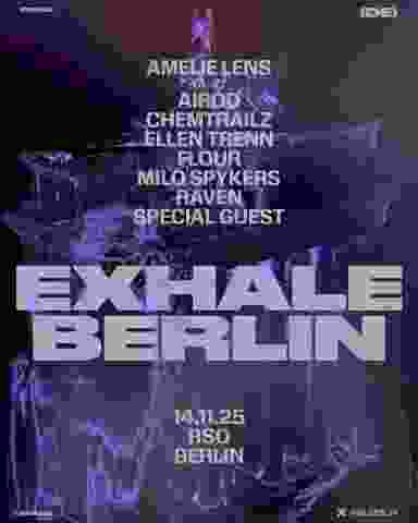 On Friday, November 14th, Amelie Lens returns to Berlin for the first time since 2022 — and this time she brings EXHALE to the raw walls of RSO for a rare intimate takeover across both the ROBUS and SUMME floors. Alongside Amelie, the night features a powerful lineup of AIROD, Chemtrailz, Ellen Trenn, FLOUR, Milo Spykers, Raven — and a very special surprise guest.