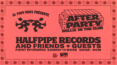 Halfpipe Records retourne au Point Ephémère le 14 Mars prochain pour l'Afterparty de leur Nollie In The Club à l'Elysée Montmartre, présentée par El Tony Mate ☆