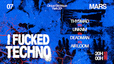 😈 I FUCKED TECHNO 🔞 Before EXPLOSIF 100% Hard Music ! On vous attend nombreux·euses à l’Anti-Club, salle mythique, underground et ultra accessible en transports 💙 LINE-UP : Thysmad (https://www.instagram.com/t.h.y.s.m.a.d/) UNKNM (https://www.instagram.com/unknm.wav/) DeadMan (https://www.instagram.com/deadman.dj/) AIR LOOM (https://www.instagram.com/airloom.db) 📍Cirque Électrique (Anti-Club) - Paris 20ᵉ Ⓜ️ 15min du NOCT et 20min de Gare du Nord 🗓️ Samedi 07 mars 🕗 20h → 00h ⚠️ Places limitées 🎟️ Billets sur Shotgun 💶 Cash accepté sur place (si places restantes) 💙 Espace 100% safe Respect | Bienveillance | Inclusion pour toutes et tous. Aucune forme de discrimination ne sera tolérée (sous peine d’exclusion définitive). À la Saphir Party Vol.1, on a terminé la nuit sur un DJ set techno. De là est née une envie simple : ne pas cloisonner. On vient du rap, mais on croit aux ponts plutôt qu’aux frontières. Instagram : instagram.com/saphir.sessions YouTube : youtube.com/@saphir.sessions TikTok : tiktok.com/@saphir.sessions
