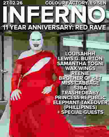 Babes… gather round. INFERNO is turning 11 and she is stepping onto the dancefloor in her final form. This is the last INFERNO with MOTHER Lewis G. Burton at the helm before they hand over the keys to the queendom. So expect emotions, drama, glamour and some good old fashioned queer chaos.