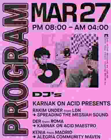 Karnak on Acid returns for an all-night takeover with the inimitable Rakim Under and resident Der. Joining the medley, Kenia.