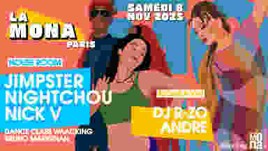 La légende Deep House anglaise JIMPSTER, cofondateur du label Freerange, débarque à La Mona. Remixeur pour Kerri Chandler, Bob Marley ou Osunlade, ses mixes soulful et hypnotiques l’ont mené du Panorama Bar à Womb Tokyo. À ses côtés, la parisienne NIGHTCHOU, résidente de Tsugi Radio qui a récemment partagé l’affiche avec Chez Damier, ouvrira la soirée avant que NICK V ne prenne le relais pour un voyage House, Techno et Disco tout en élégance.