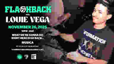 Louie Vega’s Annual Flashback Event is the perfect way to launch your holiday season! The party happens on one of the biggest party nights of the year, Wednesday Nov 26 Thanksgiving Eve, and is going down at Musica. Known worldwide as one of the greatest DJs to ever do it, Louie Vega will be blessing us all with an extended set of House Classics, Disco, Boogie and MAW! Get ready to Dance, Dance, Dance!