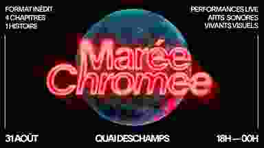 Préparez-vous à vivre la Marée Chromée, un Open-Air immersif et engagé au format inédit. Éveillé vos sens et votre conscience ce 31 août. Plongez dans une dystopie artistique où la frontière entre réalité et imagination se noie sous le poids d’un phénomène inarrêtable qui transformera Bordeaux et le monde en chrome. Vous serez les témoins de ce cataclysme à travers des performances artistiques sonores, vivantes, et visuelles déclinées en 4 chapitres. Ils seront introduits par une narration sous forme de court-métrage, véritable fil conducteur de l’évènement. La nuit du 31 août verra le possible et l'impossible se rencontrer, la nuit où les sombres rêves peuvent se transformer en réalité… ❈ OPEN AIR IMMERSIF SCÉNARISÉ À l’image d’un film, l’évènement sera rythmé par plusieurs chapitres. Une narration sous forme de court-métrage introduira les performances collaboratives des artistes, et dévoilera les étapes clés de l’histoire. La narration sera diffusée sur un grand écran de projection qui complètera la scène des performances. ❈ CONCERT / DJs SETS LIVE & PERFORMANCES Les artistes vous proposeront des performances en relation avec le chapitre dans lequel ils interviennent. La programmation artistique vous sera dévoilée le 11 AOUT. ❈ EXPOSITION / STANDS Une exposition autour de l’histoire de la Marée Chromée et de l’art militant sera mise en place par Nuit Chromée en collaboration avec le mouvement @alternatibabordeaux , qui lutte pour la justice sociale et l’environnement.