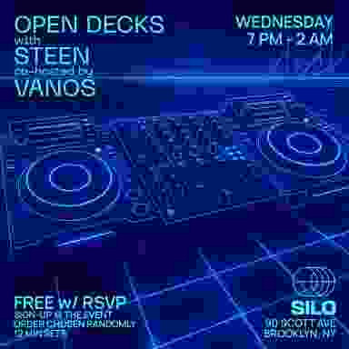 Hosted by DJ and musician Steen, Open Decks is a creative and fun space where DJs can hang and share their house and techno music live. Hear your favorite or original tracks on Silo's front room sound system, a custom 15,000 watt Danley powerhouse.