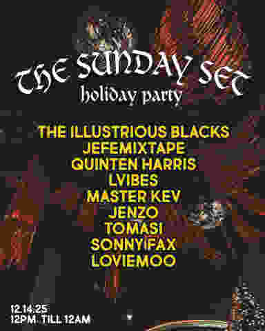Sunday, December 14th, 2025 The Sunday Set Quentin Harris The Illustrious Blacks Master Kev & MORE! Doors Open 2pm 21 + Proper I.D. Required The Ornate Studio 650 Sackett St, Brooklyn NY