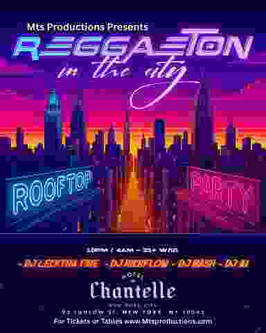 Experience a high-energy Saturday night at Reggaeton in the City, the premier Latin rooftop party taking place November 29 at Hotel Chantelle. Hosted by MTS Productions, this signature NYC event brings together Reggaeton, Hip Hop, Latin club hits, Bachata, Salsa, and Merengue for an unforgettable evening on one of the city’s most iconic rooftops.