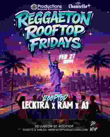 Reggaeton Rooftop Fridays returns on Friday, February 27th at Hotel Chantelle, bringing rooftop energy and Latin sounds to the Lower East Side. From 10:00 PM to 4:00 AM, dance under the stars while NYC’s top DJs deliver a nonstop mix of Reggaeton, Latin, Dembow, and club hits. This weekly Friday party blends skyline views, stylish nightlife fashion, and a vibrant crowd for a high-energy start to your weekend. Whether you're coming with friends or planning a celebration, the rooftop setting creates the perfect backdrop for an unforgettable night out in Manhattan. Event Details Event: Reggaeton Rooftop Fridays Date: Friday, February 27 Time: 10:00 PM – 4:00 AM Venue: Hotel Chantelle, 92 Ludlow St, New York, NY 10002 Music: Reggaeton, Latin, Dembow, Club Hits Age Requirement: 21+ with valid ID Admission: Free – $15 (Tickets or VIP tables required) Birthday celebrations, bachelor and bachelorette parties, graduations, anniversaries, and corporate outings are welcome. VIP table packages include priority entry, reserved seating, and bottle service. Early reservations are strongly recommended, as rooftop sections frequently sell out. Dress code is nightlife chic. Upscale attire is required; management reserves the right to deny entry based on dress standards. Secure tickets or reserve a VIP table in advance to guarantee entry and avoid long wait times.